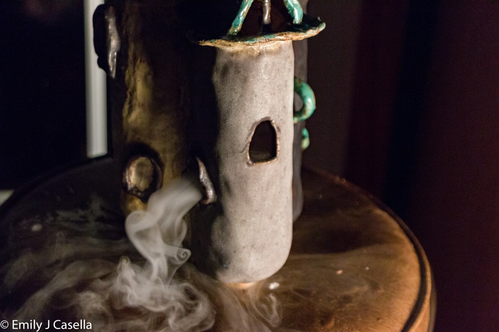 A topic I mull over with ceramics is what do they become after being created. Will they just sit on a shelf, inanimate for the rest of their existence. Will someone pet them? How long until dust starts to form? I harp on the idea that people don’t want to use ceramics that are not factory-made because the user is afraid they will break it. What they are really saying is, they don’t want to be guilty of breaking it by using it or they don’t want to offend the artist by being having a potential accident. So they tell themselves it will be better if they just leave it on the shelf. They can seem trendy by owning a ceramic, but will it be used? Think along the lines of “Fine China”. They got it as a wedding gift, so now it is locked in the dining room cabinet, waiting for the right occasion. Since these pieces are older and I am too attached to them, they live with me. On this special occasion, we had leftover dry ice. So I let my pieces have some fun.