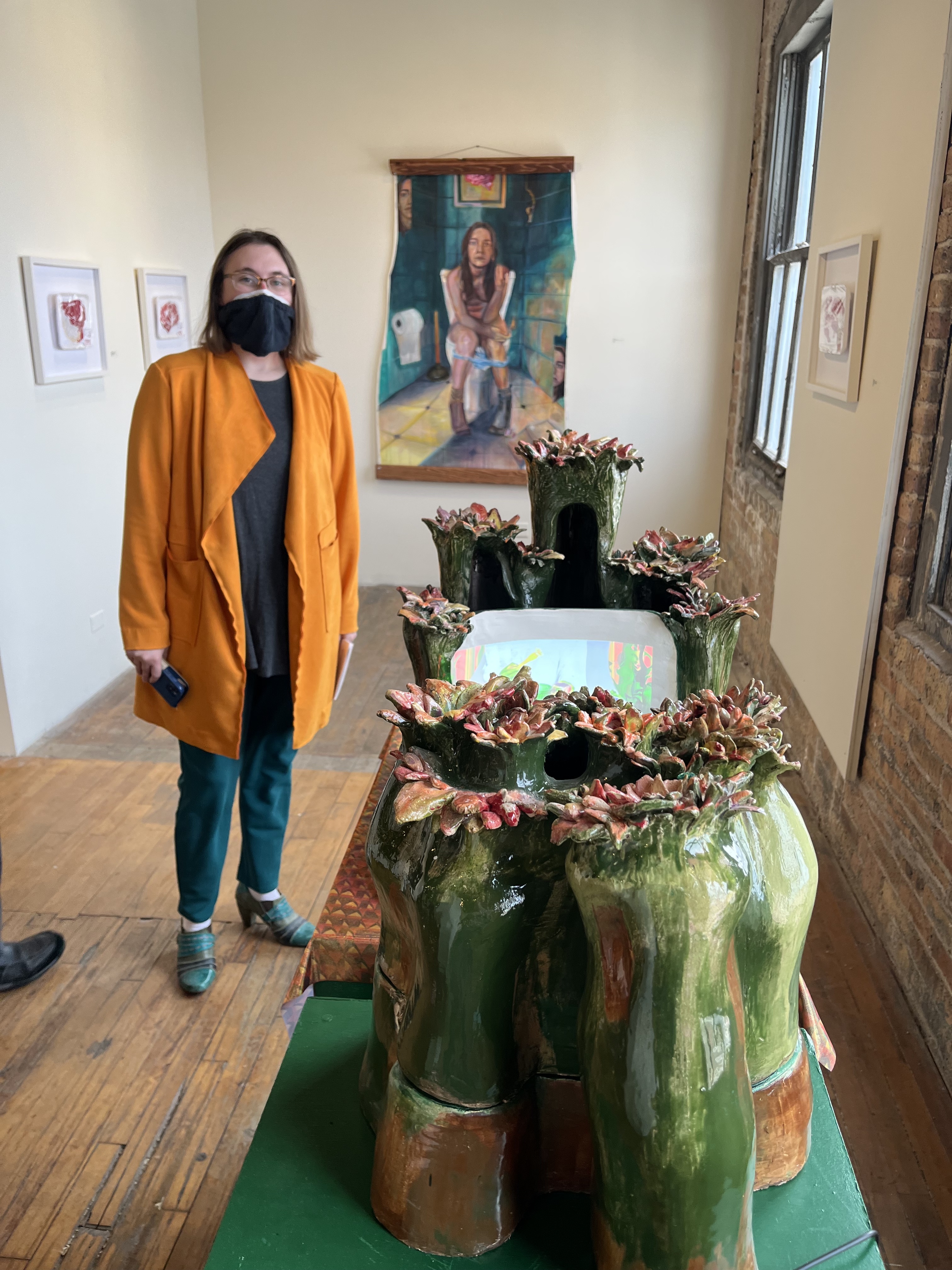 2022 January 15-February Bibere Viridi Sanctum full ceramic piece+video in Word of Mouth, Woman Made Gallery, Chicago, IL. Juror: Rosalyn D’Mello.https://womanmade.org/artwork/emily-j-casella/ https://womanmade.org/product-category/word-of-mouth/
