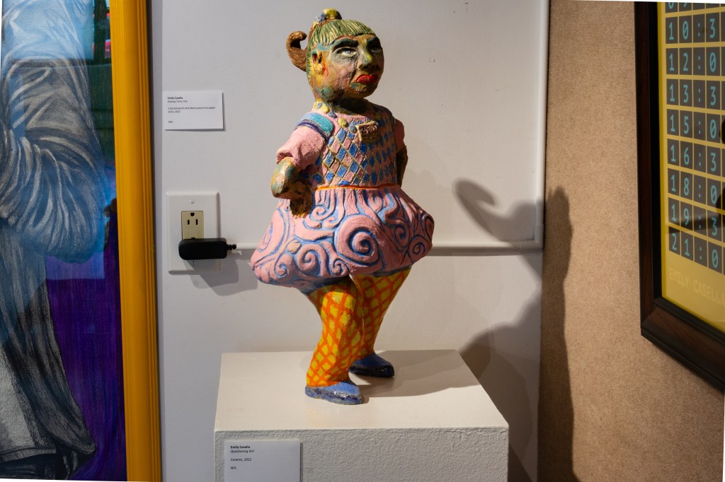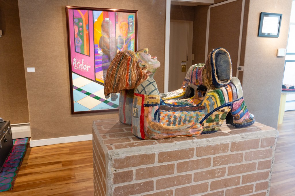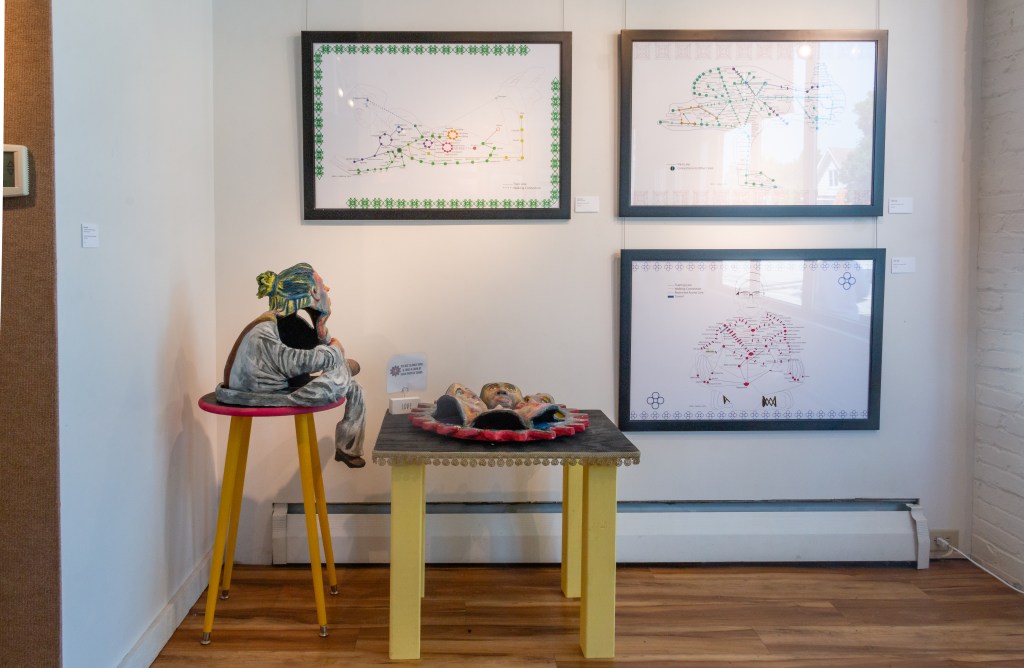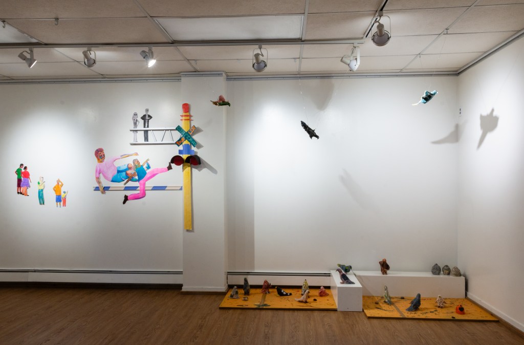 At the Chesterton Art Center, I transformed the gallery spaces into a multiroom installation of a Cafe, inside a Train Station, and a park where the viewers disembark into a vibrant neighborhood park in full color and three dimensions. Each piece poses a different conundrum of thought about the strange motions of life propelled by what society implies, tries to control, or demands what should be versus how an individual may feel. “This show is about love, the trepidation and exasperation of waiting for the promises that media and society told us what love should be, and trying to find what it actually is on Earth.”