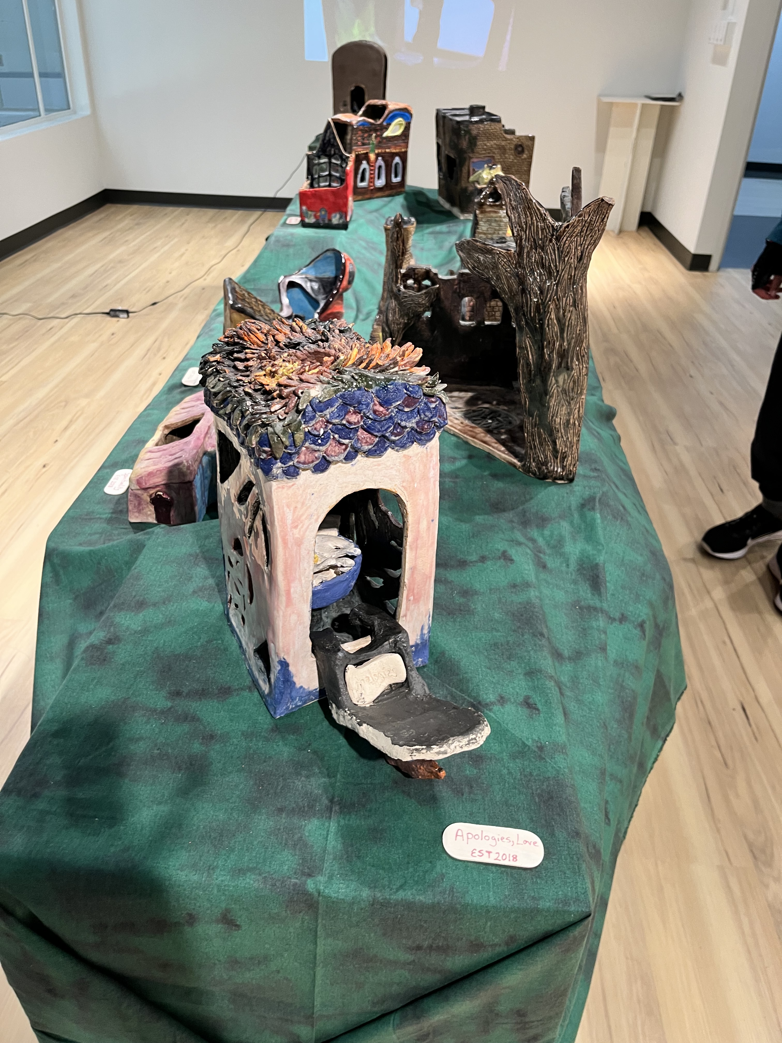 This retrospective groups together individual objects I created during periods of living with ubiquitous social anxiety. With the smaller objects, it is clear that I was housing this worrisome resident. The smaller objects were made without a preconceived strict vision but with unencumbered creativity, allowing for the subconscious to seep through. What results are objects covered in bricks, shadows, colors, and unique habitats portraying Strange Little Worlds for the viewers to explore.