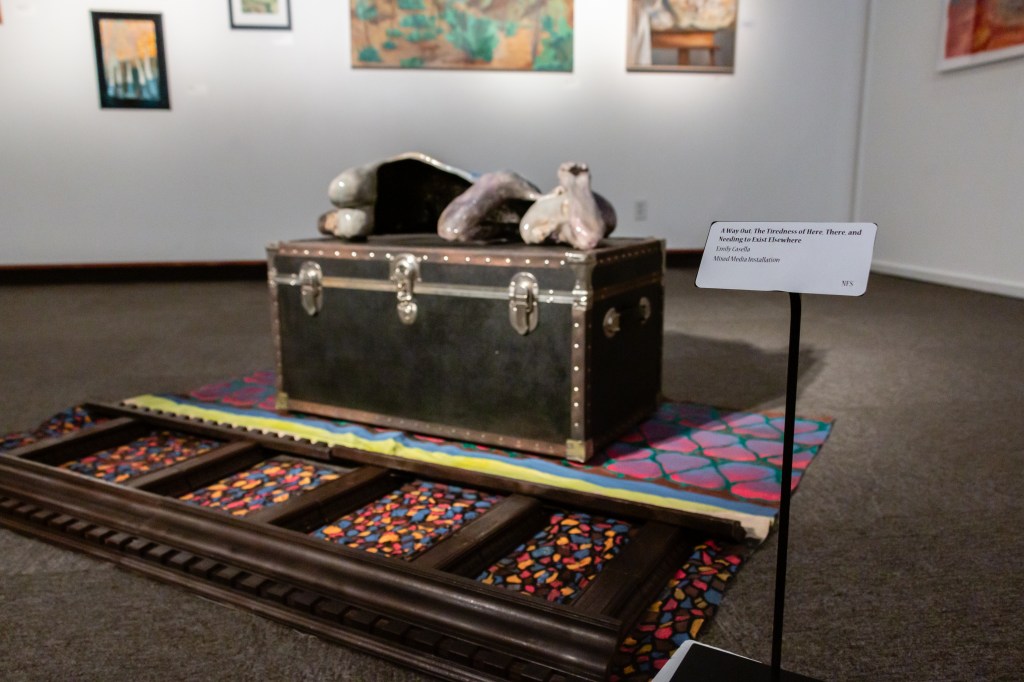 Her Ceramic People have been displayed in public buildings in Indiana and Illinois. Her artwork has been in numerous shows in Chicago, Indianapolis, Arizona, and Northwest Indiana and virtually in international shows. A WAY OUT was exhibited in the Southwest Surrrealism/Surreal Southwest in Prescott Arizona, juried by Amy Ernst (Max Ernst’s granddaughter) in June-July of 2024.